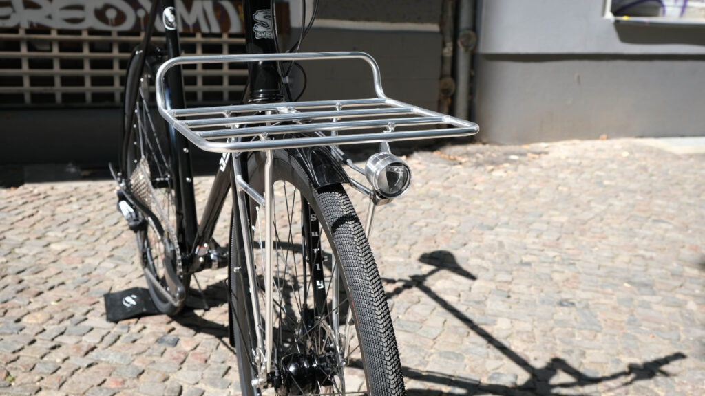 Based around a riser cockpit for easy steering his daily loads onto his Pelago bicycles Commuter Front Rack.