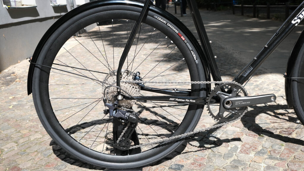 Son Nabendynamo 28 12 dynamo hub powering front & rear lights, gears coming out of the Shimano Cues range, topped with Silca hot waxed chain of course!
