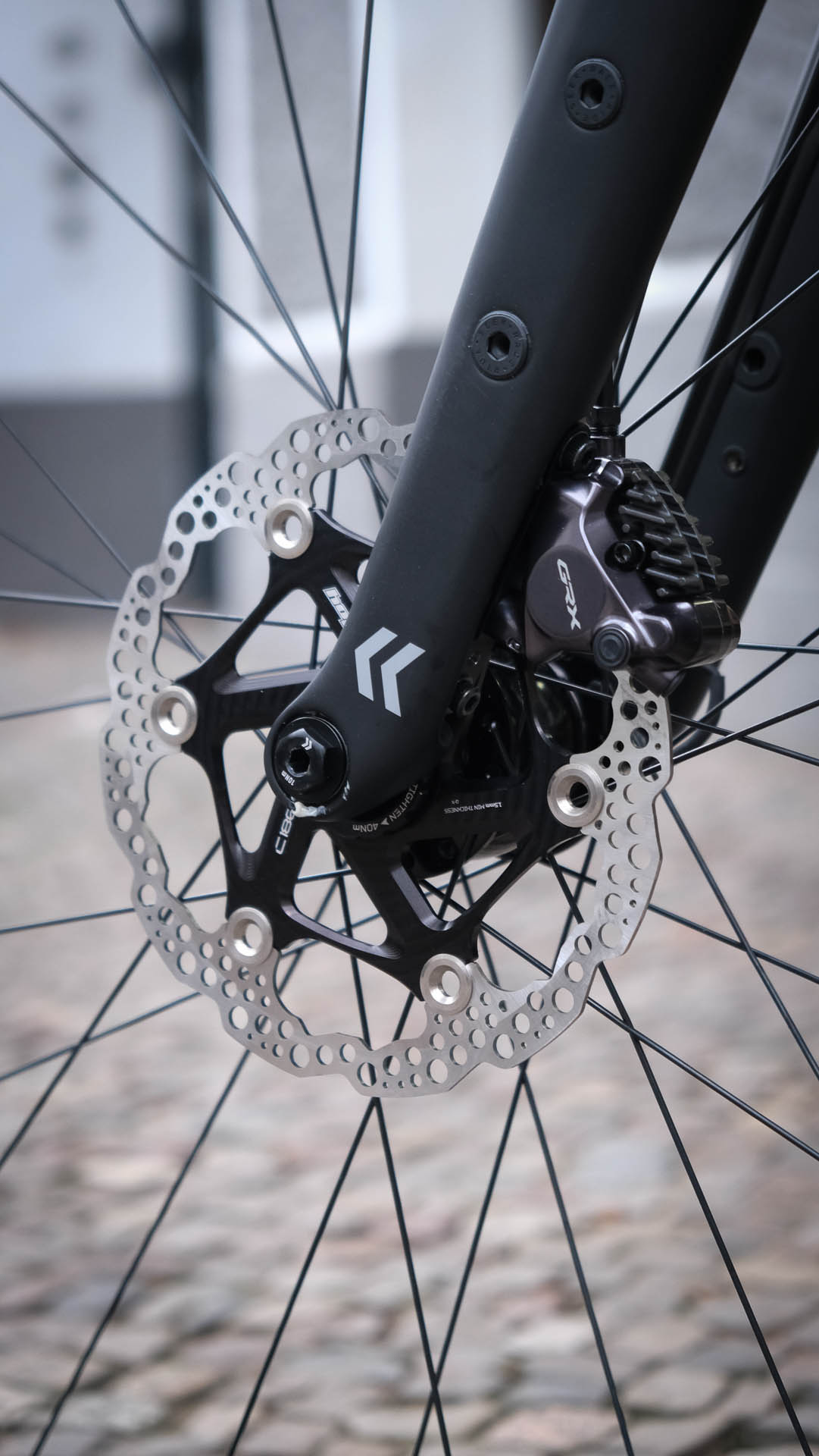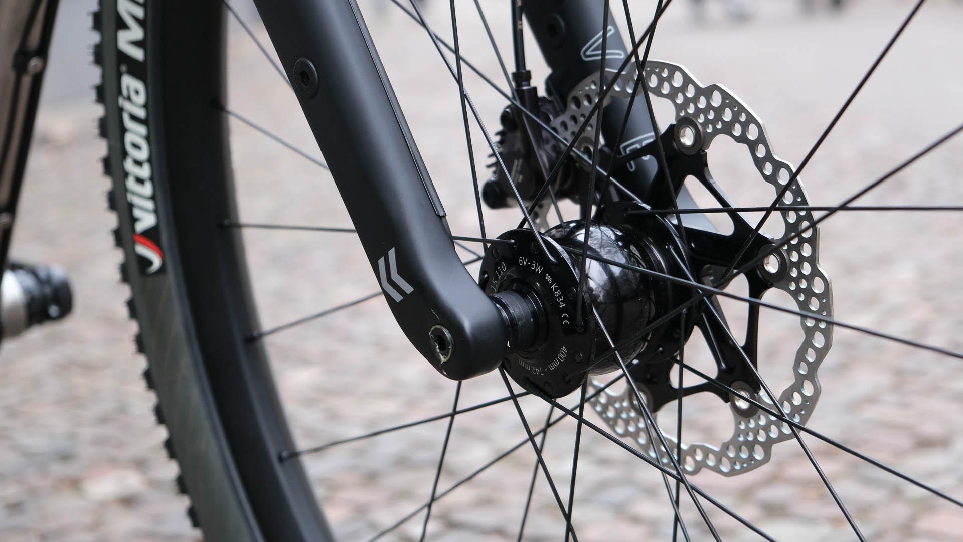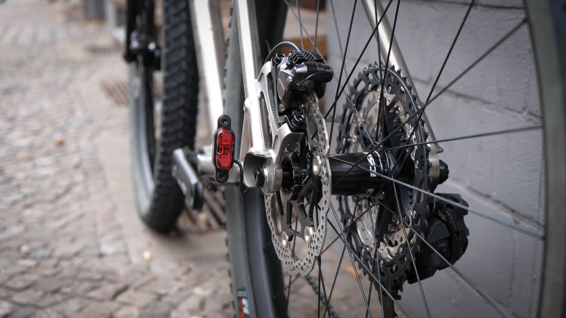 The multi purpose GMX+ is rolling on Erase rear hub and SON dynamo (powering a Ladelux headlight and rear light while charging your USB devices) laced to beautiful and strong Syntace W33i rims. Proven Vittoria Mezcal tires finish the wheelset.