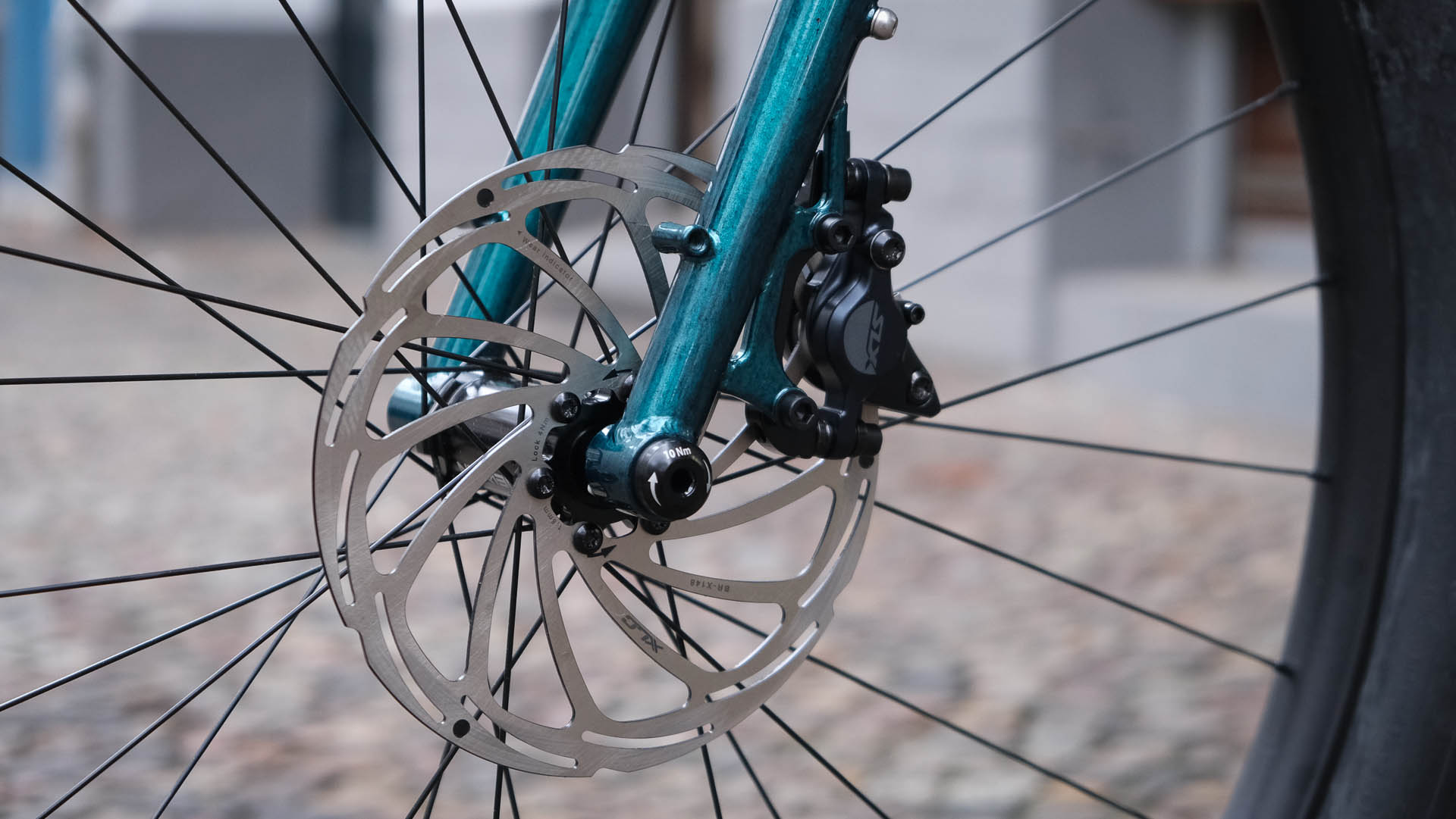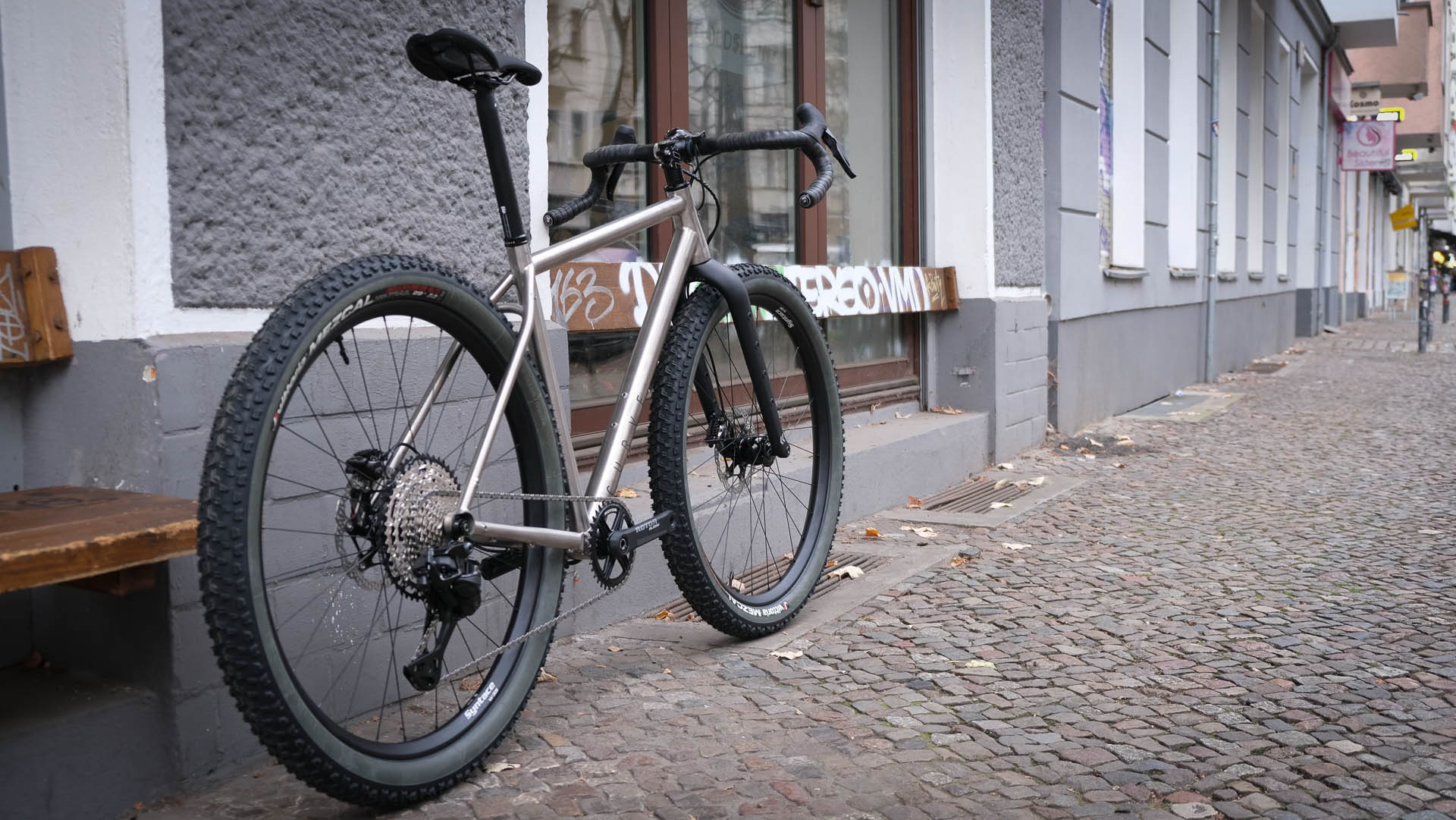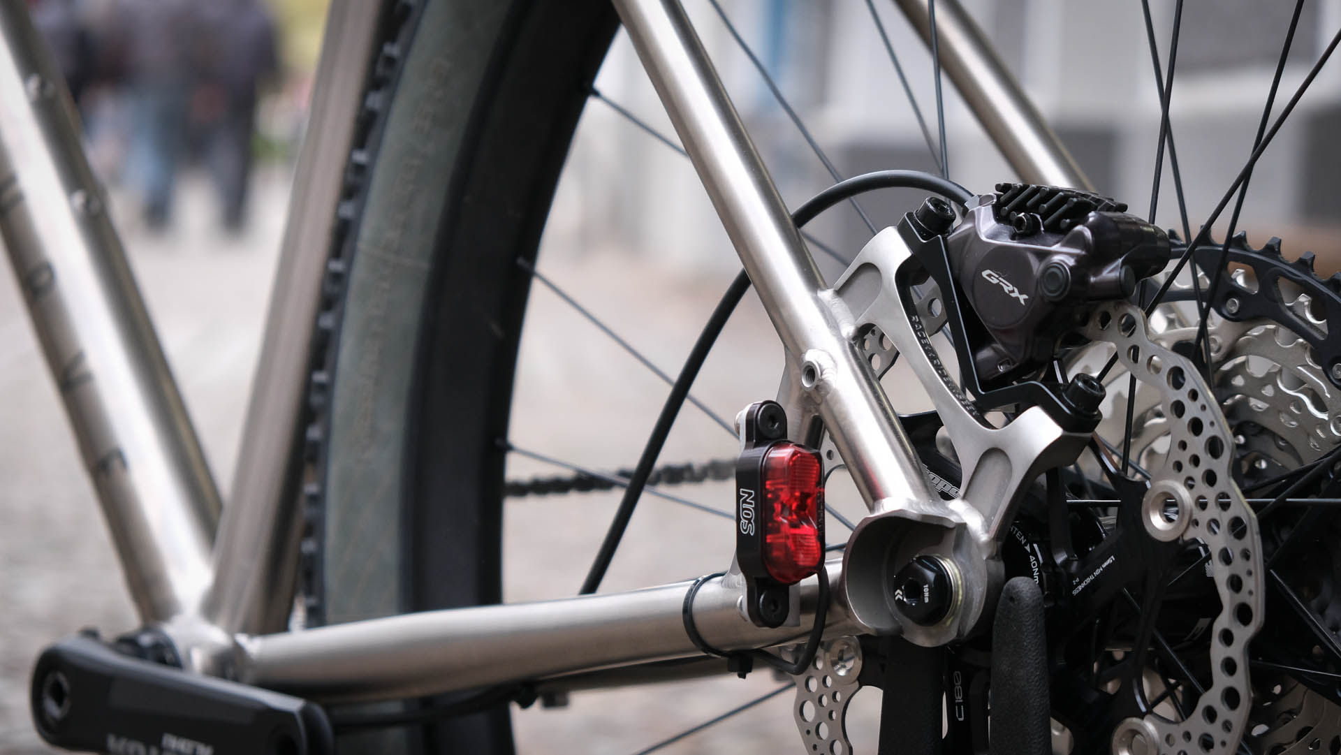 Leo´s Stooge Rambler is an iconic looking bike for sure. Just look at that toptube and fork crown! But its not only good looking with its shiny polished wheels (Industry Nine and SON hub laced to DT Swiss rims with wide Vittoria Mezcal tyres), robust Gevenalle X 11-speed Shimano MTB drivetrain, elegant Middleburn RS8 crankset and matching Velo Orange seatpost/stem combination … but it is actually a very capable and fast adventure bike with massive tyre clearance. The bike is stopped by the probably best mechanic disc brake on market right now: the Growtac! SON headlight and minimal B+M taillight attached to the beautiful Drust light holder make it night proof.
